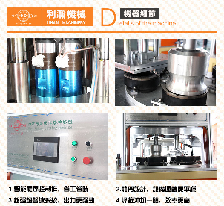1.設備在焊接時不后仰,口罩沖切時無毛刺, 轉盤旋轉主動水準校對。