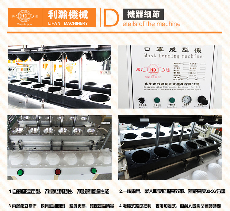 2.操作簡(jiǎn)練,特性操作,便利易用,人員自定(可根據(jù)需求出產(chǎn)多種組合設(shè)備)可一次 成型一至四層高規(guī)范口罩,定型速度快,工藝先進(jìn),處理了傳統(tǒng)的粘模問(wèn)題。