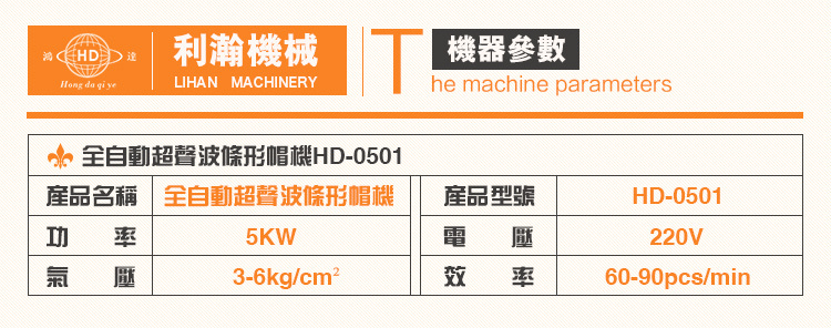 1.本機(jī)是我司研制的全主動(dòng)製帽設(shè)備,運(yùn)用超聲波技能將不織布頭經(jīng)過機(jī)電一體化主動(dòng)控制,製作成醫(yī)用手術(shù)帽、護(hù)士帽等產(chǎn)品;